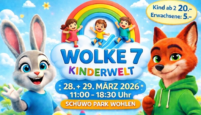 Im Rahmen der Veranstaltung „Wolke 7 Kinderwelt“ im Schüwo Park in Wohlen hat sich der Veranstalter dazu entschieden, einen Teil der Ticketeinnahmen zugunsten des Bündnis KinderSchutz einzusetzen.
